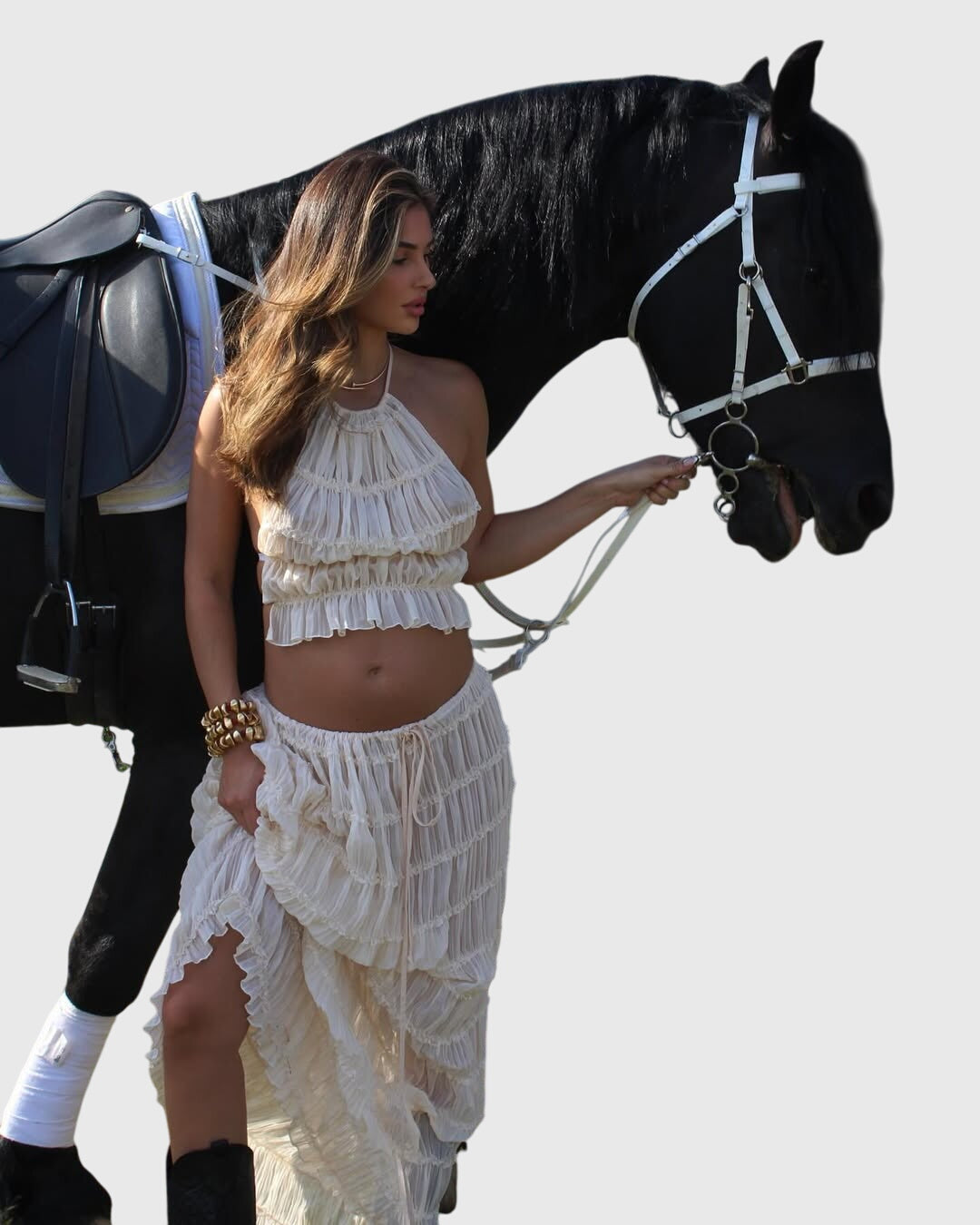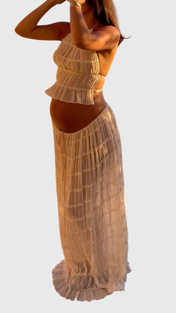 Channel laid-back allure with the Bertille Tideveil Maternity Set — a two-piece ensemble that flows with intention and grace. Crafted for gentle movement and summer moments, its soft ruffle accents and whisper-light layers frame the silhouette in a way that’s equal parts free-spirited and artful. Whether you're seaside lounging or drifting through a garden event, this set captures the beauty of ease in motion.